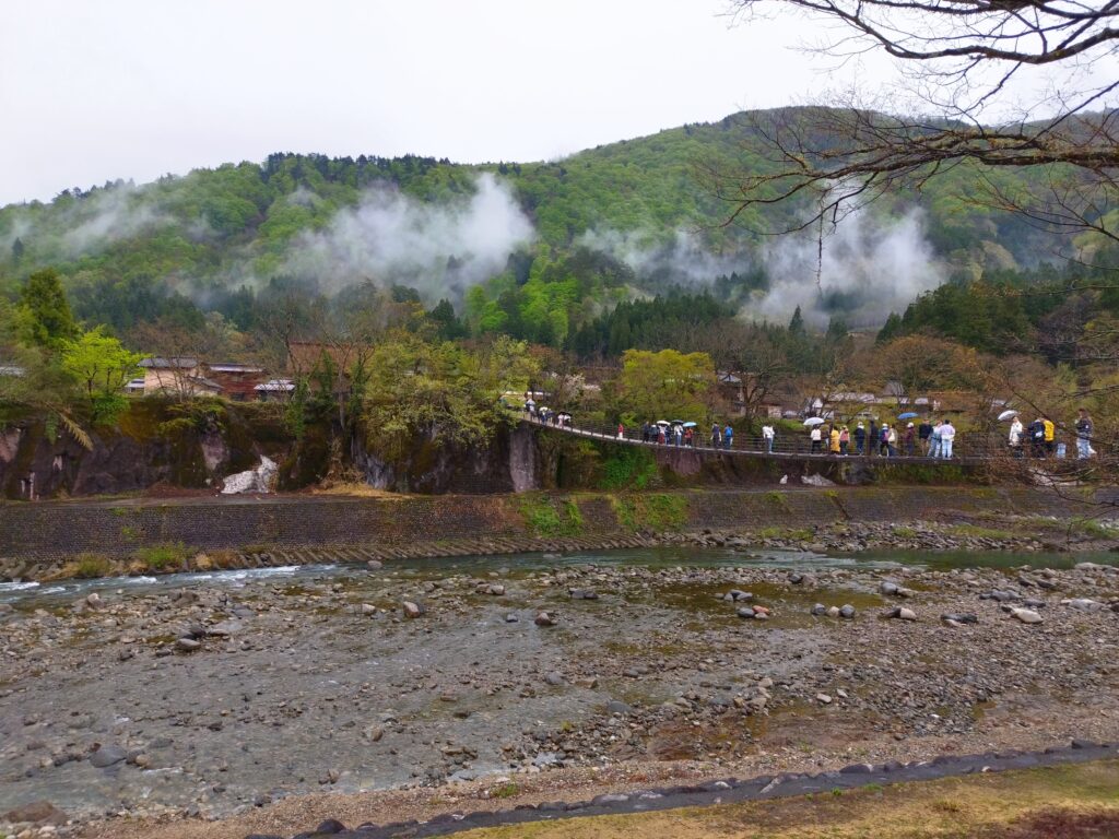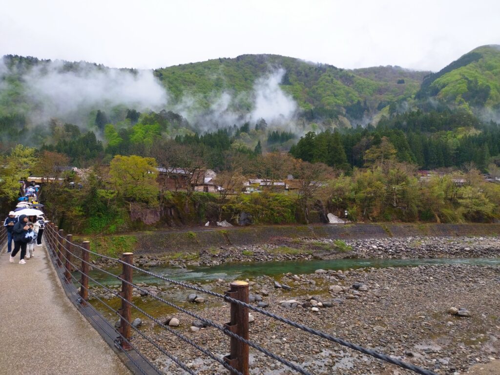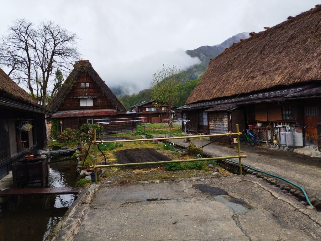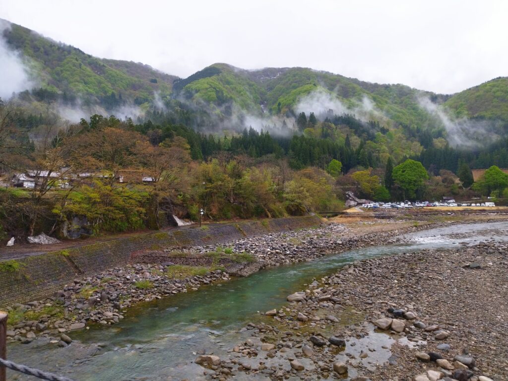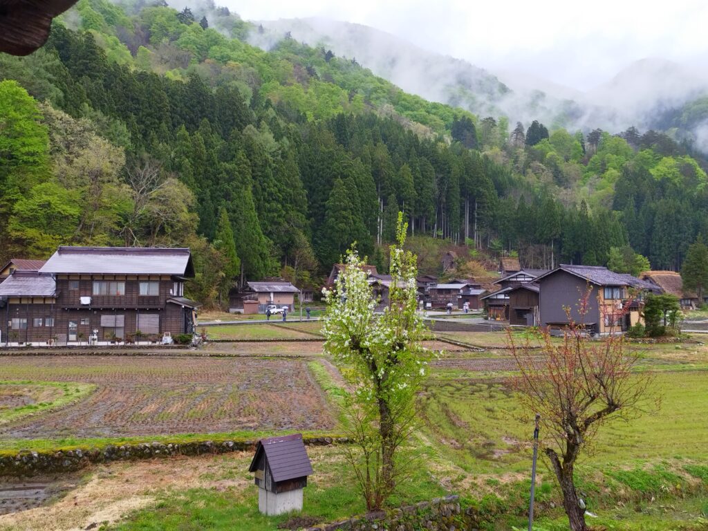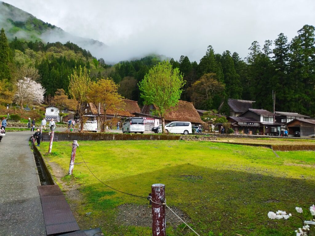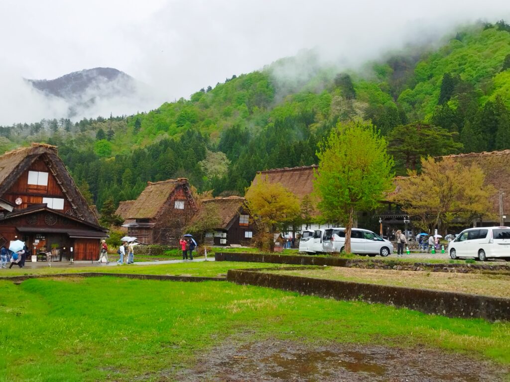 合掌造りの家々がぎゅっと集まっているのかと思いきや、広いエリアにゆったりと点在していて、その空間全体がひとつの風景として完成されていました。
