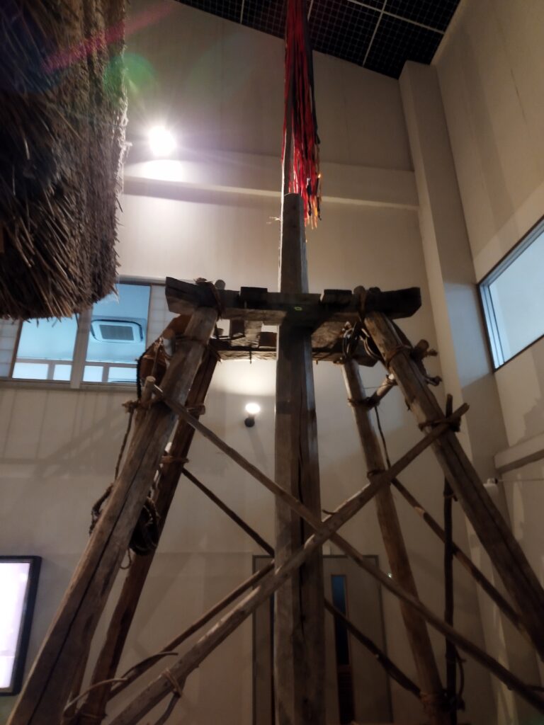- 釘を使わない柔構造: 家全体を釘を使わず、木材と「ネソ(マンサクの木を煮て作った縄)」だけで固定しています。これにより、強風や雪の重みに対して建物が適度にしなり、折れたり壊れたりしにくい構造になっています。