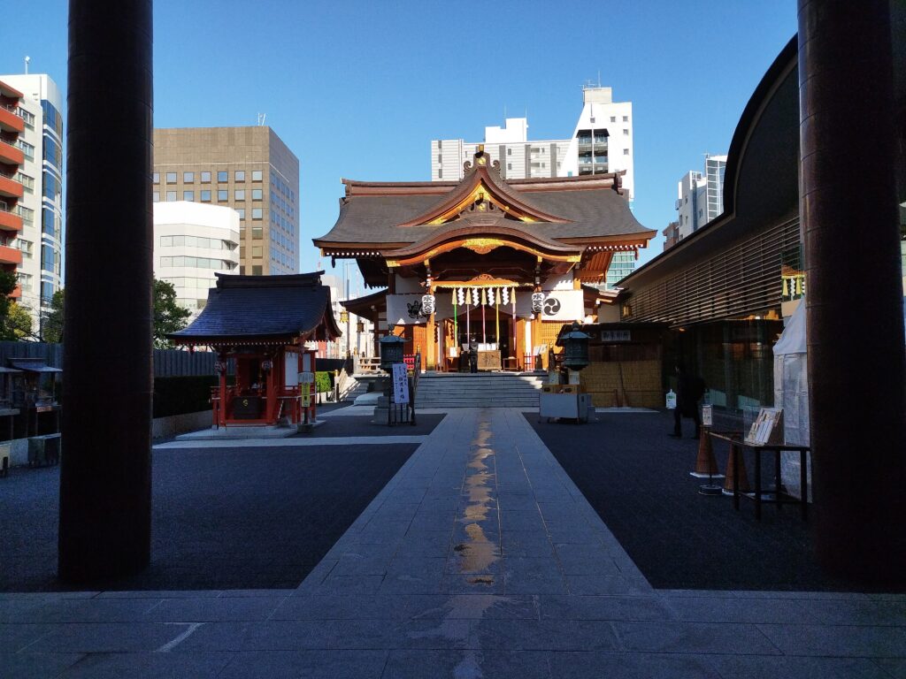 - 都会的な「免震建築」と伝統の融合: 伝統的な神社の意匠を保ちつつ、建物全体を支柱が支える現代的な構造は一見の価値があります。雨天でも濡れずに参拝できる機能美も特徴です。