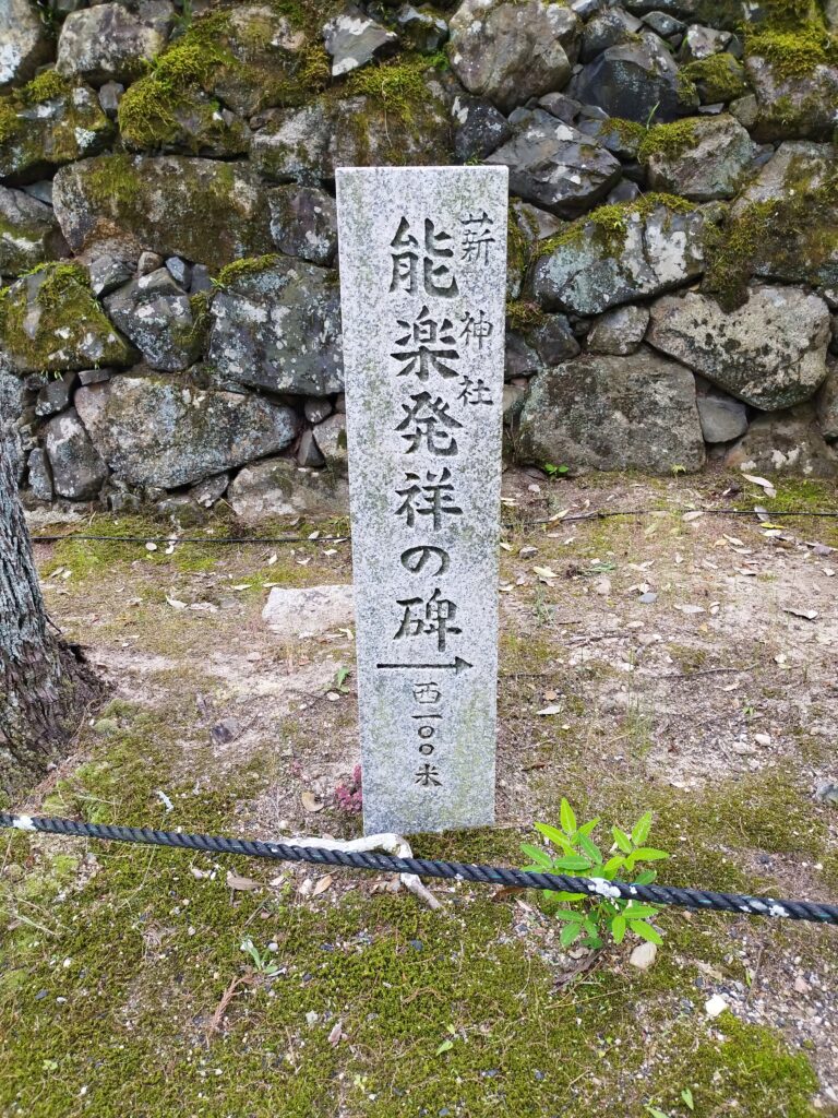 少し歩くと現れたのが、「能楽発祥の碑」の案内。
